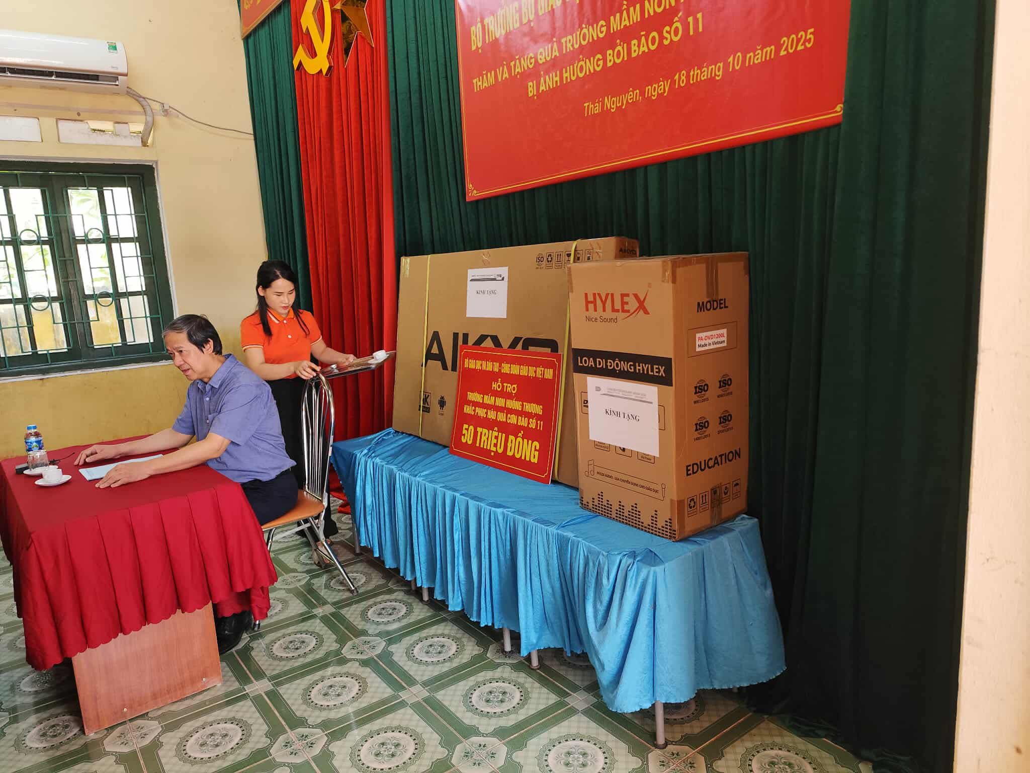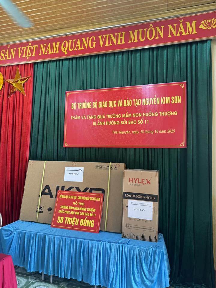 Tại Trường Mầm non Hương Thượng và Trường THPT Chuyên Thái Nguyên, Bộ trưởng cùng Công đoàn Giáo dục Việt Nam đã trao tặng tổng kinh phí hỗ trợ lên tới 150 triệu đồng, cùng nhiều thiết bị phục vụ giảng dạy, trong đó có tivi chuyên dụng Aikyo và loa di động Hylex.