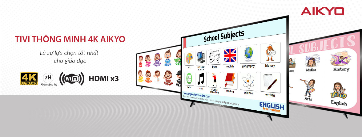 Phù hợp với chủ trương của Bộ GD&ĐT:Với những lợi thế trên AIKYO Smart TV được các thầy cô giáo trong cả nước tin dùng và là công cụ hữu dụng trong các lớp học hiện đại theo chương trình cải cách Sách Giáo khoa mới theo thông tư 05, 43, 44 của ngành.